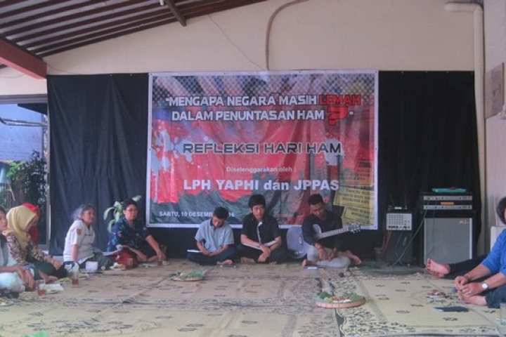 Peringatan hari Hak Asasi Manusia (HAM) kembali diadakan di LPH Yaphi, kali ini bekerja sama dengan Jaringan Peduli Perempuan dan Anak Surakarta (JPPAS), Sabtu 10 Desember 2016. Dalam sambutan pada acara refleksi hari HAM, Direktur Yaphi, Haryati Panca Putri menegaskan kembali komitmennya untuk tetap akan melindungi warga masyarakat dari tindakan pelanggaran Hak Asasi Manusia (HAM) di Indonesia.